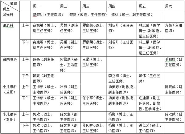 廈門大學(xué)附屬?gòu)B門眼科中心多點(diǎn)執(zhí)業(yè)醫(yī)師排班表