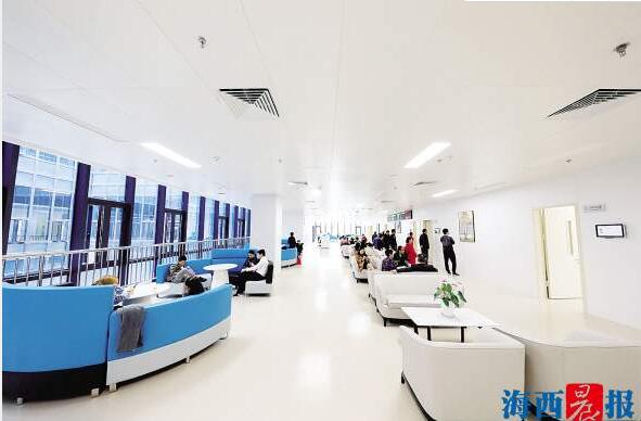 現(xiàn)代化的裝修、暖綠暖黃為主色調(diào)的環(huán)境讓人眼前一亮??剖议T診和住院樓層各種指引標(biāo)識清晰明確,隨處可見溫馨提示,還有志愿導(dǎo)引人員。階梯形前臺,讓坐在輪椅上也能與醫(yī)務(wù)人員無障礙溝通。等候就診時(shí),你可以在按摩椅上來一場放松之旅,也可以漫步VIP候診區(qū)長廊欣賞名畫。在休息區(qū),休閑吧和兒童游樂區(qū)等可以緩解診療時(shí)帶來的陌生感和緊張感。同時(shí),五緣院區(qū)還配有超千個(gè)地面、地下停車位,方便“有車一族”到院泊車。