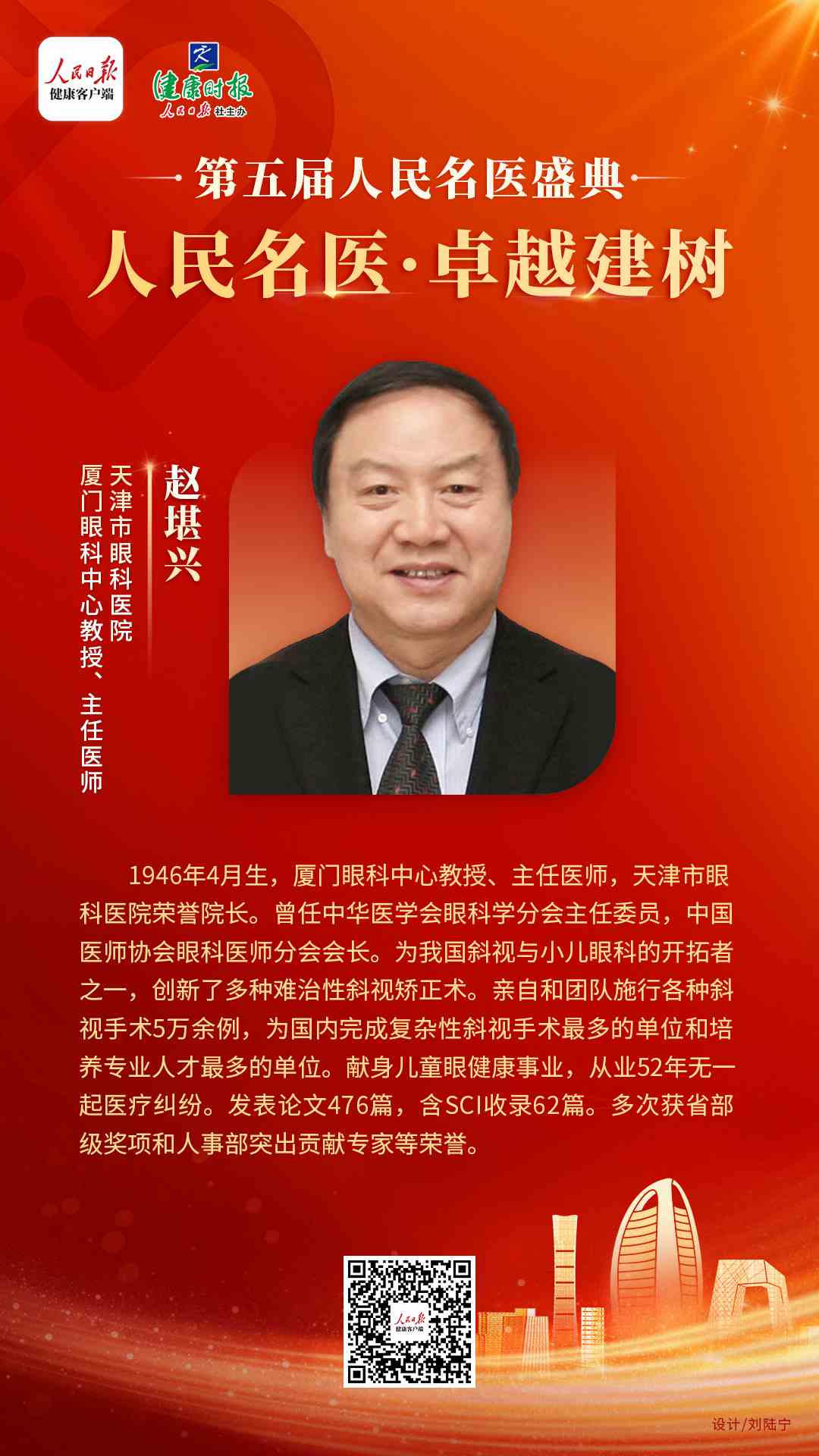8月16日,由人民日報健康客戶端、健康時報主辦的第五屆人民名醫(yī)盛典于線上舉行,會上發(fā)布了備受業(yè)內(nèi)關注的人民名醫(yī)系列榜單。其中,廈門眼科中心國際眼科科學院院士趙堪興教授獲“人民名醫(yī)——卓越建樹”榮譽稱號。