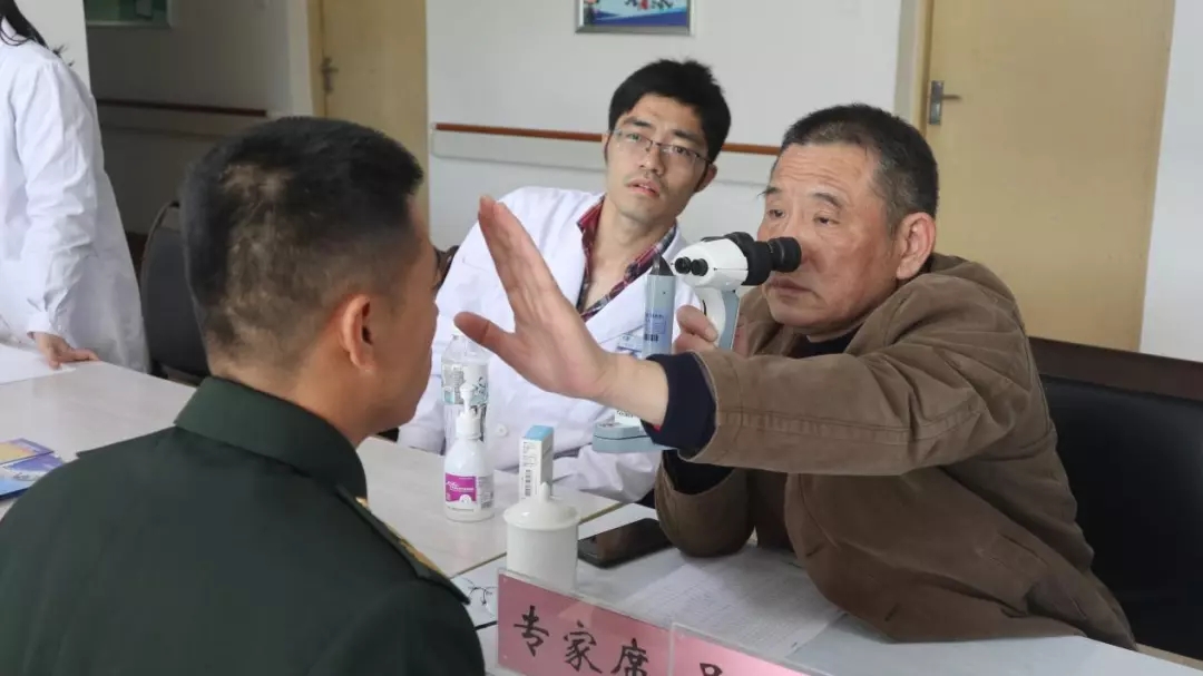 吳護(hù)平副院長(zhǎng)為戰(zhàn)士們做眼部檢查