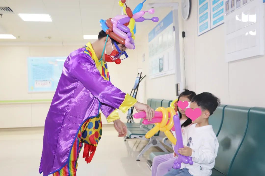 在規(guī)范有序的診療工作外,身著小丑服飾的氣球達(dá)人吸引了眾多來(lái)院小朋友的目光。