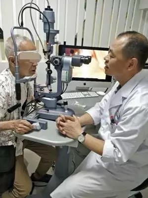 陳偉主任為楊爺爺進(jìn)行裂隙燈檢查