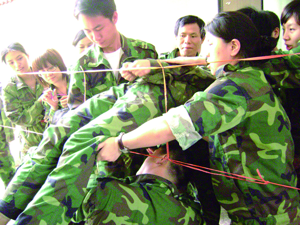 “相信大家,放心把你自己交給大家,你什么都不要想,大家會安全地把你接住”這是“信任背摔”項目的內(nèi)涵所在。項目形式是一個人站在4米高的位置,手被紅領(lǐng)巾綁住,然后在隊友“我們準(zhǔn)備好了,我們支持你,我們愛你”中從高空倒下,你的隊友們會用手臂把你安全接住,讓你感受團隊?wèi)?zhàn)友的臂膀與赤誠。
