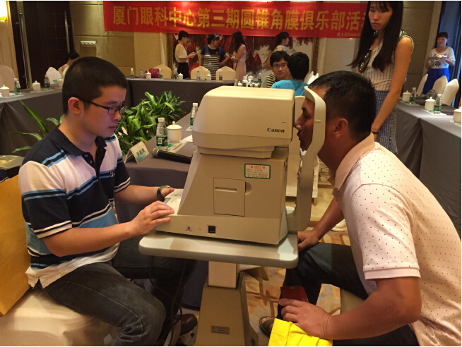 當天下午,除開展交流會外,廈門眼科中心還同期舉辦第三期圓錐角膜俱樂部活動,同時還聯(lián)合參會的知名眼科專家為市民開設(shè)服務(wù)專場?,F(xiàn)場為市民進行答疑和會診,還提供裂隙燈、驗光等眼部篩查服務(wù),為市民朋友提供了難得的與專家面對面交流的機會。到場的每位圓友持有裂隙燈,眼壓,驗光,裂隙燈照相,前節(jié)OCT,瞼板腺照相,淚河高度,淚膜破裂時間等相關(guān)檢查免費券,圓友可在門診時間到廈門眼科中心眼表與角膜病門診享受免費檢查。