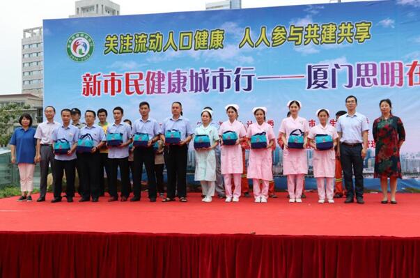 我院手術(shù)室的謝海航(同事代領(lǐng))、白內(nèi)障科室的李蘇丹、眼底二區(qū)的韋雙英、視光部的鐘佳靜、護(hù)理部的雷薛瑩等5名護(hù)士被選為新市民代表上臺接受與會領(lǐng)導(dǎo)發(fā)送的知識手冊、健康支持工具包。她們來廈工作多年,在護(hù)理崗位上兢兢業(yè)業(yè),雖然因為職業(yè)的特殊性有時會加班、熬夜,甚至顧不上吃飯,但是還是會利用空閑時間里加強鍛煉、關(guān)注身心健康,并且把健康知識傳播給患者和周圍的人。
