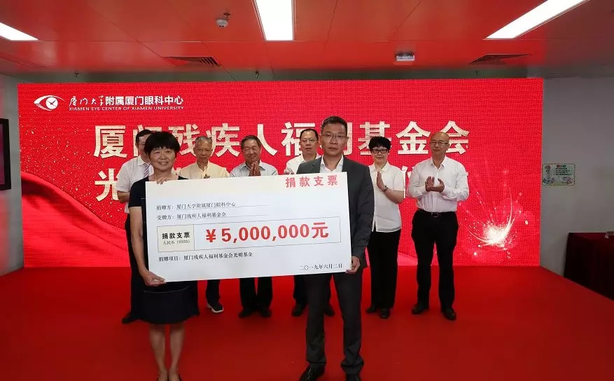 五緣院區(qū)開業(yè)儀式上,廈門眼科中心再次將“光明的信仰”傳遞——為廈門市殘聯(lián)捐款500萬元,成立專項(xiàng)基金,用于視力殘疾預(yù)防、眼科手術(shù)救助、盲人協(xié)會活動等。