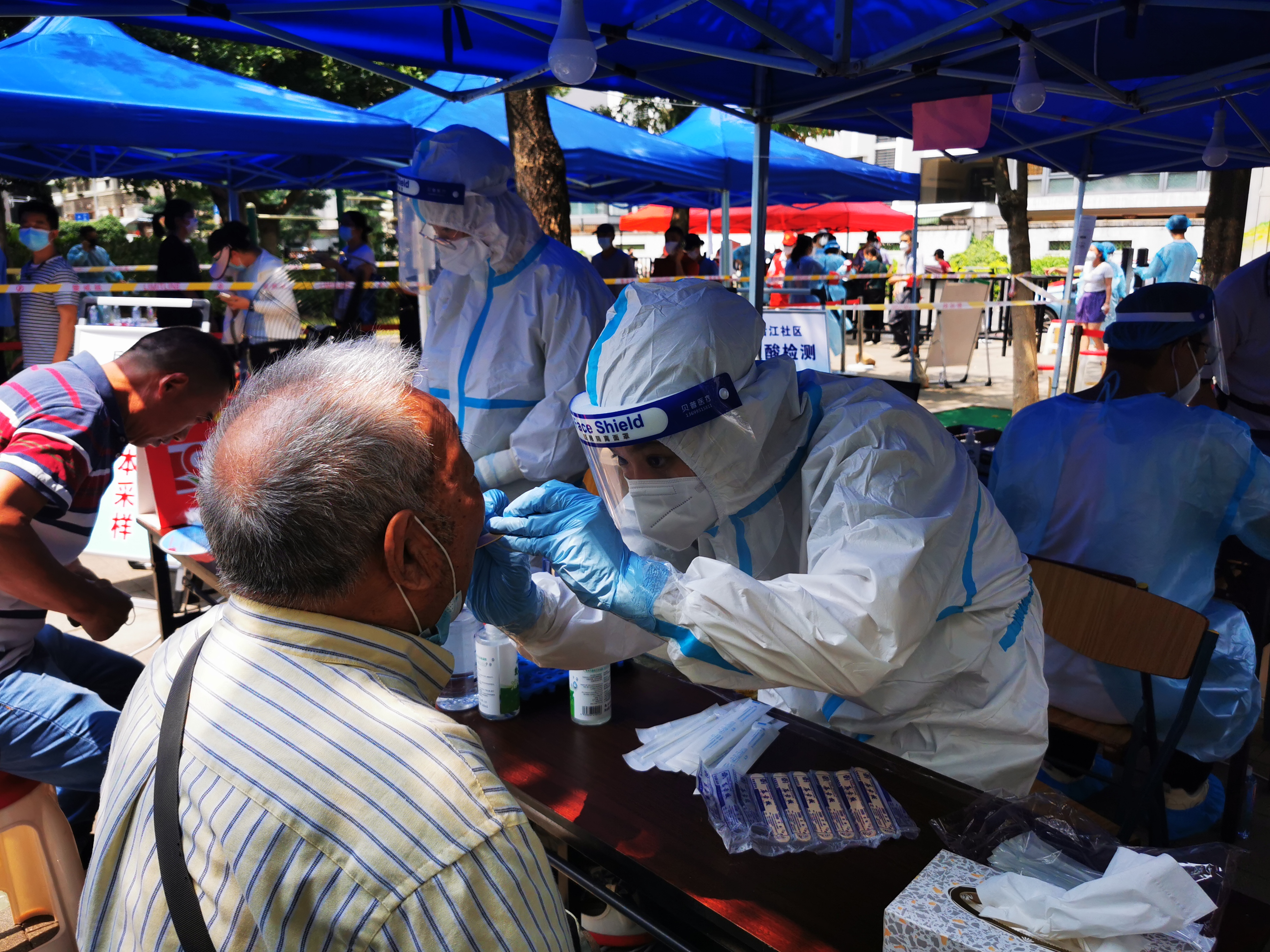9月14日、15日,廈門眼科中心組織醫(yī)護(hù)人員,分批前往廈門何厝社區(qū)、萬壽陽臺(tái)山、祥濱公園、梅園公園等地點(diǎn)進(jìn)行核酸采樣。