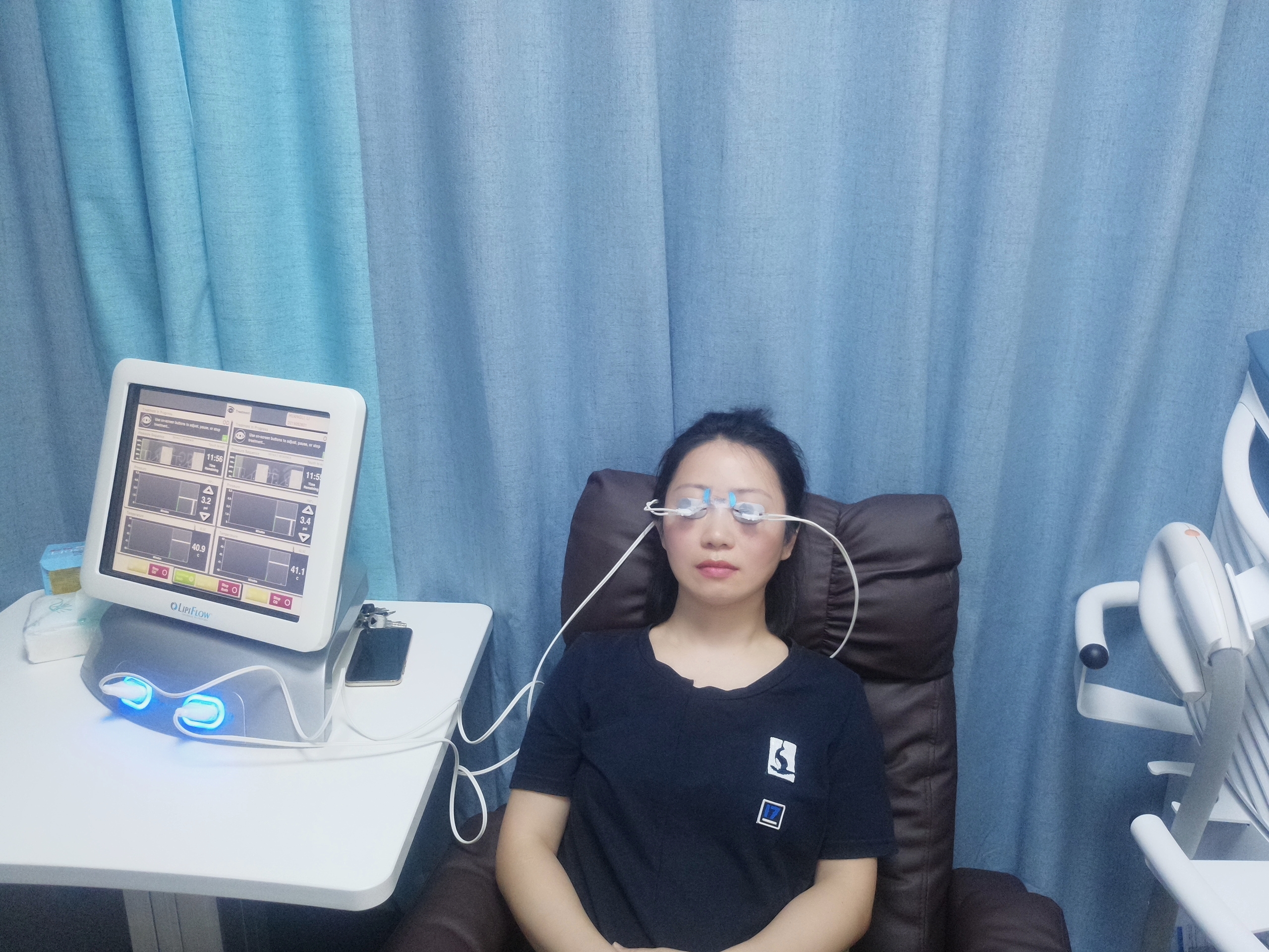 對(duì)于瞼板腺功能障礙造成的干眼癥,可以嘗試LipiFlow瞼板腺熱脈動(dòng),一般單次時(shí)間在12分鐘,對(duì)于干眼癥狀的緩解作用可維持9-12個(gè)月。LipiFlow是通過(guò)在眼瞼內(nèi)側(cè)恒溫加熱瞼板腺,全程溫度控制在42.5C,以軟化凝結(jié)的油脂。再配合眼瞼外部無(wú)痛多模式脈壓按摩,促進(jìn)堵塞物排出,從而達(dá)到疏通阻塞的臉板腺的作用。