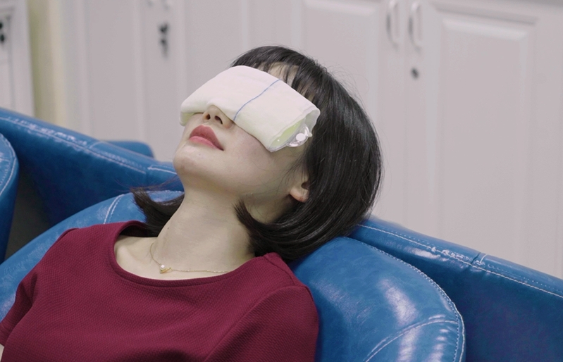 用熱毛巾或者熱敷眼罩對眼睛進行熱敷,每天一次,每次15分鐘。