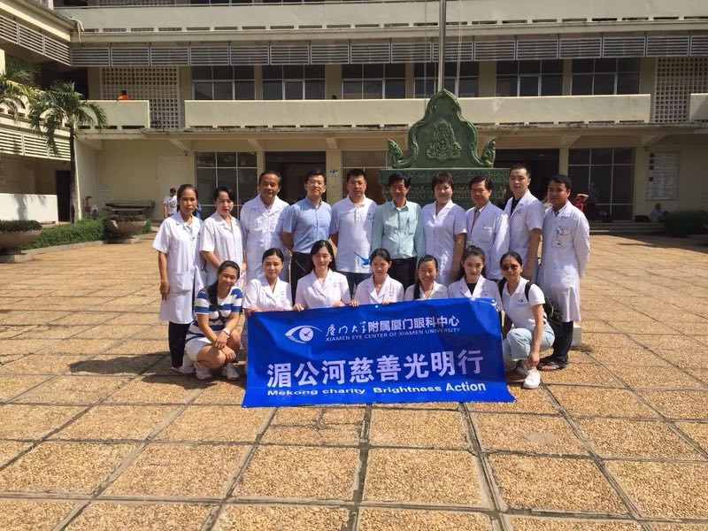 2016年10月21日,科室跟隨柬埔寨光明行先遣醫(yī)療組冒著臺風天轉道啟程前往金邊,為當?shù)?00多名貧困白內障患者免費施行手術。用充滿愛與責任的人文情懷澆灌中柬“友誼之花”。